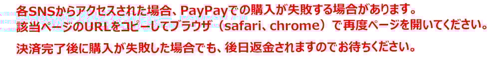※各種SNSなどからアクセスした場合、PayPay決済がご利用いただけません。該当ページのURLをコピーしてブラウザ(safari、chromeなど)で再度ページを開いてください。